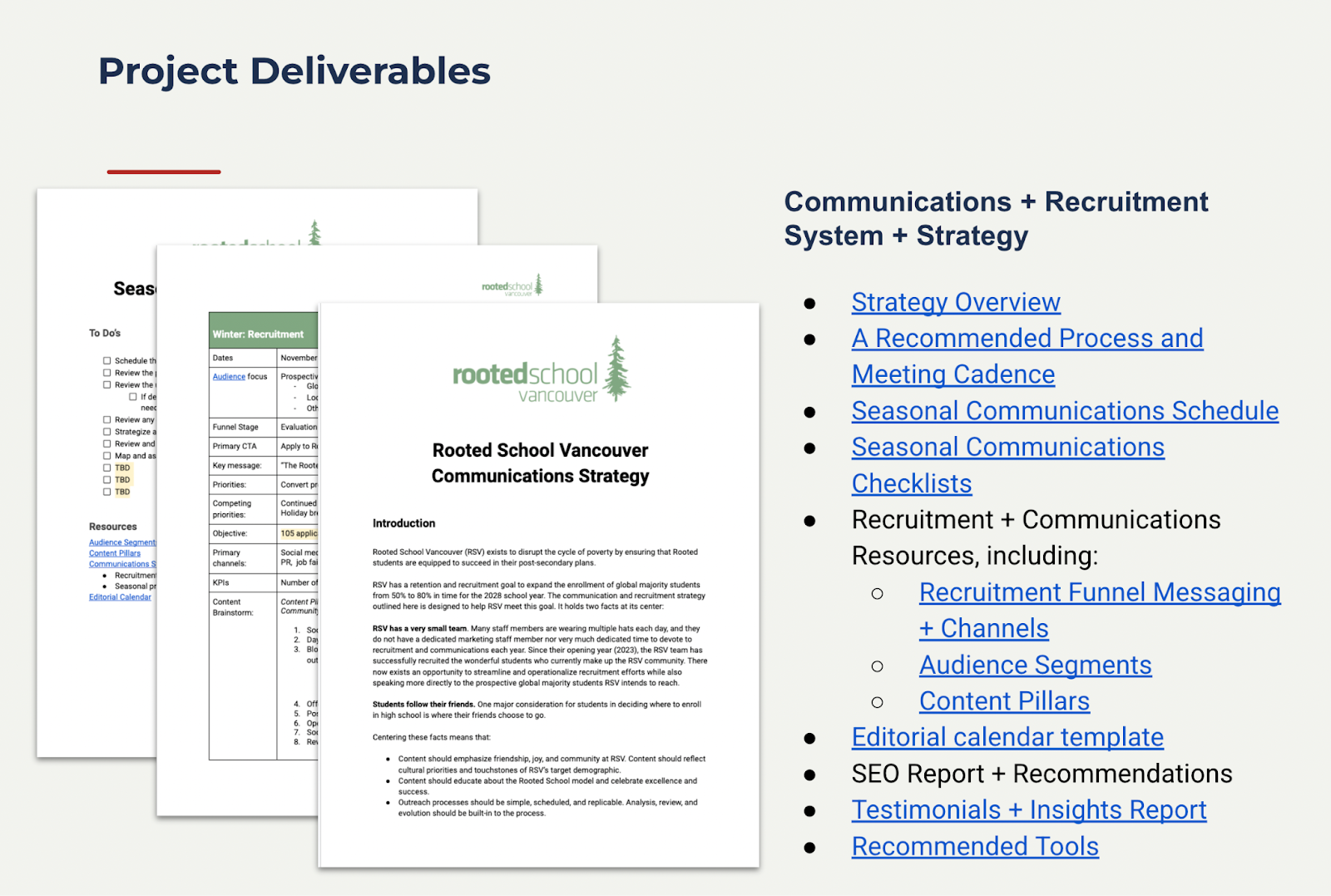 To ensure the school had everything needed for future recruitment cycles, Alexandra Hagel also volunteered additional time beyond the official project, creating student-ready toolkits, SEO education guides, and reusable collateral that the school can reuse and support their students.